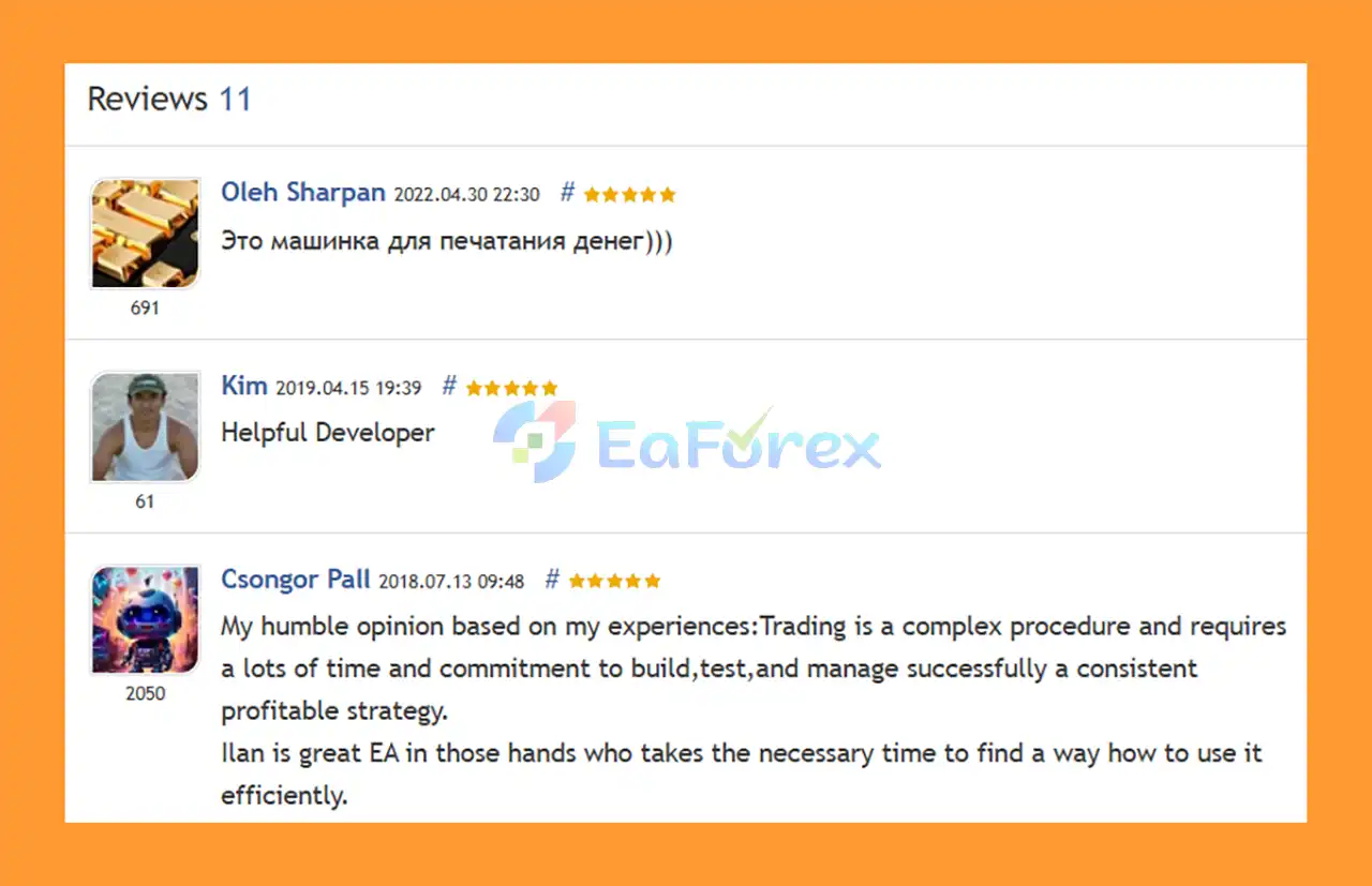 🔺Ilan EA MT5 is highly appreciated by the MQL5 community for bringing stable and reliable profits. Below are 5 star reviews from users: