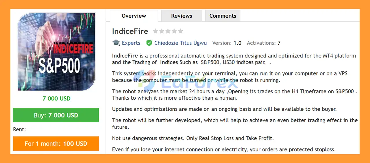 - Notable Products: IndiceFire EA MT4, IndicesLion EA MT4, GoldBulldozer EA MT4, BitcoinWhale EA MT4, BitcoinRobotTradingEA MT4, IndiceWizard EA MT4, Forexking EA MT4, Forex Vampire EA MT4, Ethereum Finisher EA MT4, RippleBullRunWizard EA MT4, GoldScalper EA MT4, IndexPro EA MT4, ForexMagician EA MT4 and other advisors. and other advisors.