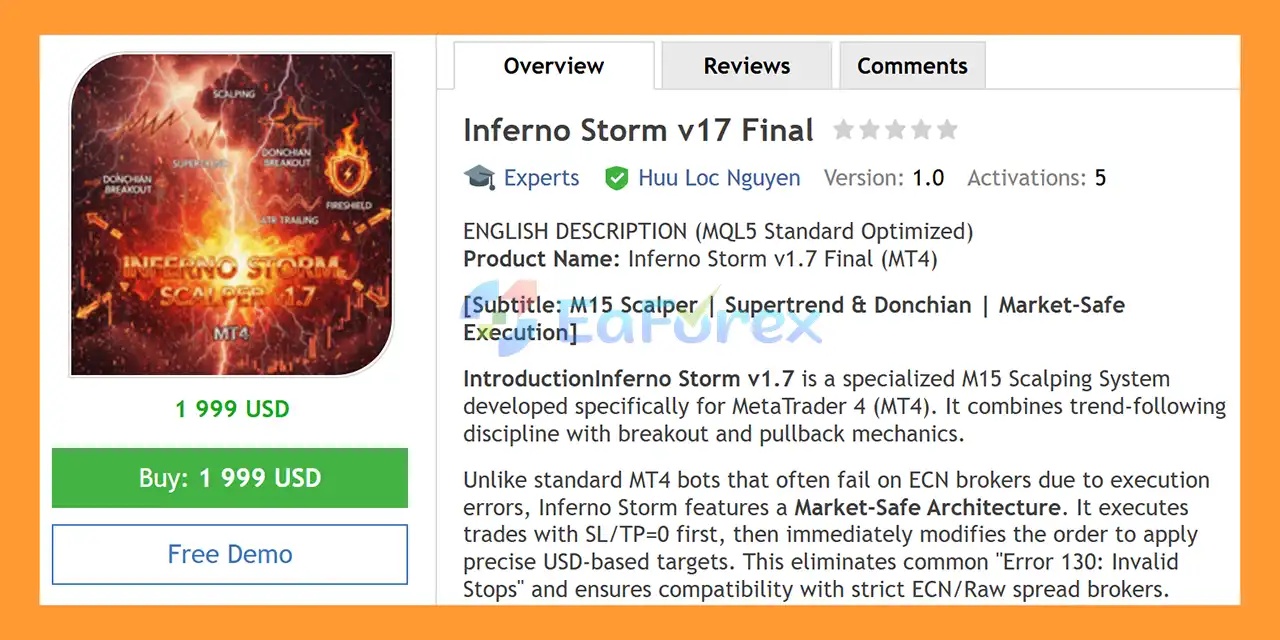 Traders choose Inferno Storm v17 Final EA for its execution safety, disciplined M15 scalping logic, exact dollar risk control, ECN compatibility, and professional-grade algorithmic design focused on precision rather than overtrading.