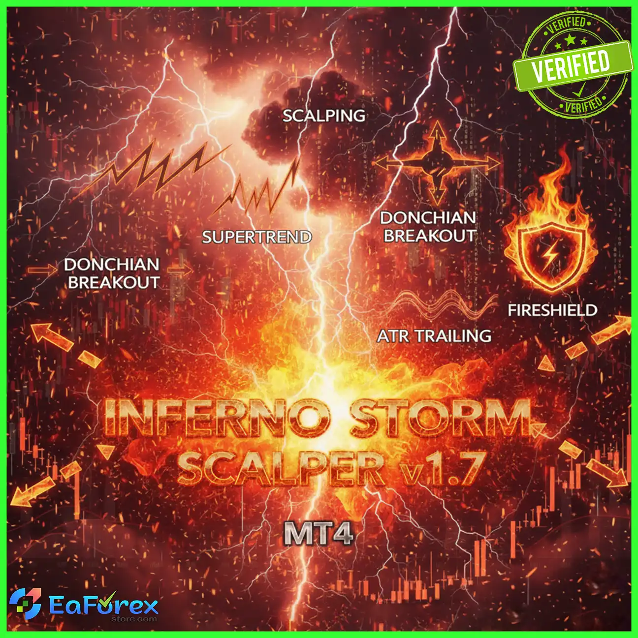 Inferno Storm v17 Final EA MT4 is a professional M15 scalping Expert Advisor developed for the MetaTrader 4 platform, combining trend-following discipline, breakout momentum, and pullback precision. It is engineered with a Market-Safe Architecture to ensure flawless execution on ECN and Raw-spread brokers while maintaining strict risk control and consistency.