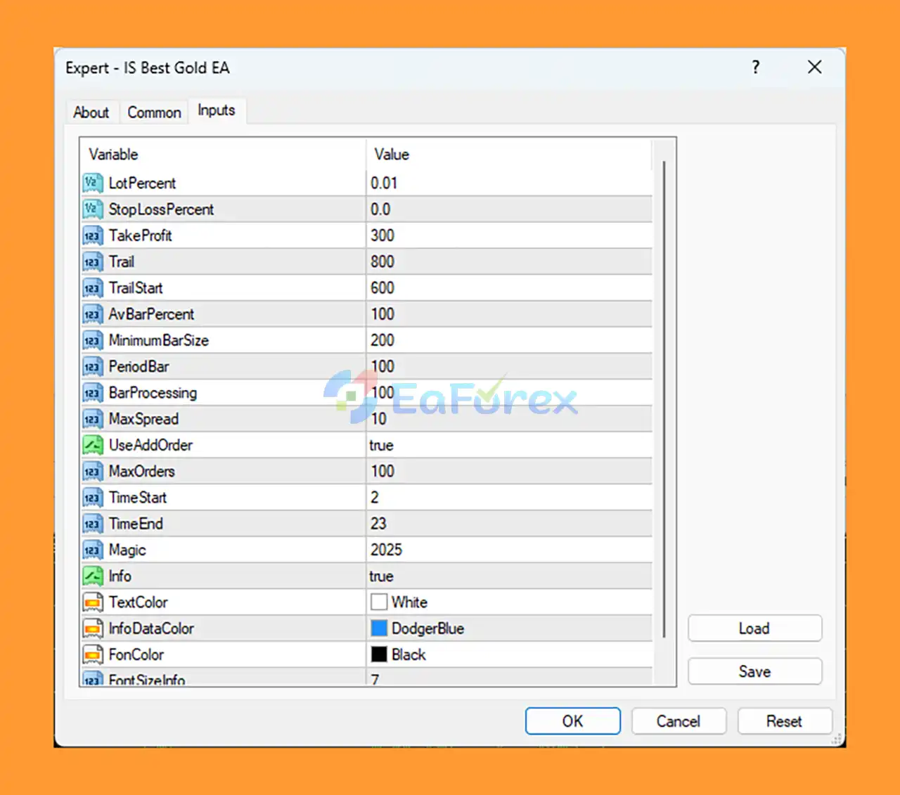 IS Best Gold EA MT4 setting