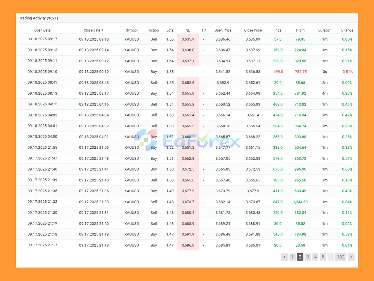 • Dynamic Trailing Stop – Trailing activates after 600 pips in profit to secure gains during strong trends.