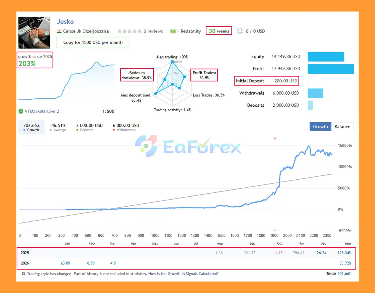 7. What are the live performance results of Jesko EA MT5?