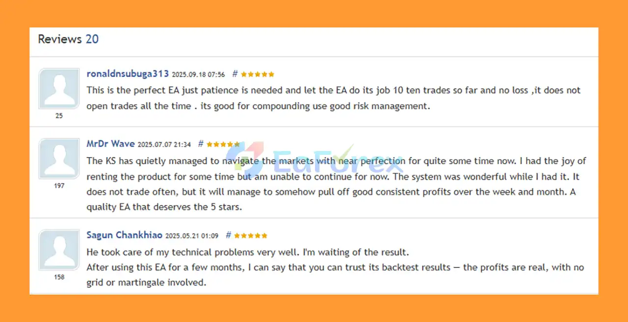 🔻King Sniper EA  is highly appreciated by the MQL5 community for bringing stable and reliable profits. Below are 5 star reviews from users: