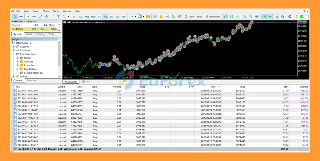 KT Gold Nexus EA MT4 is a professional automated trading system designed for the MetaTrader 4 platform, specifically optimized for trading Gold (XAUUSD) on the H4 timeframe with a focus on long-term consistency and capital protection.