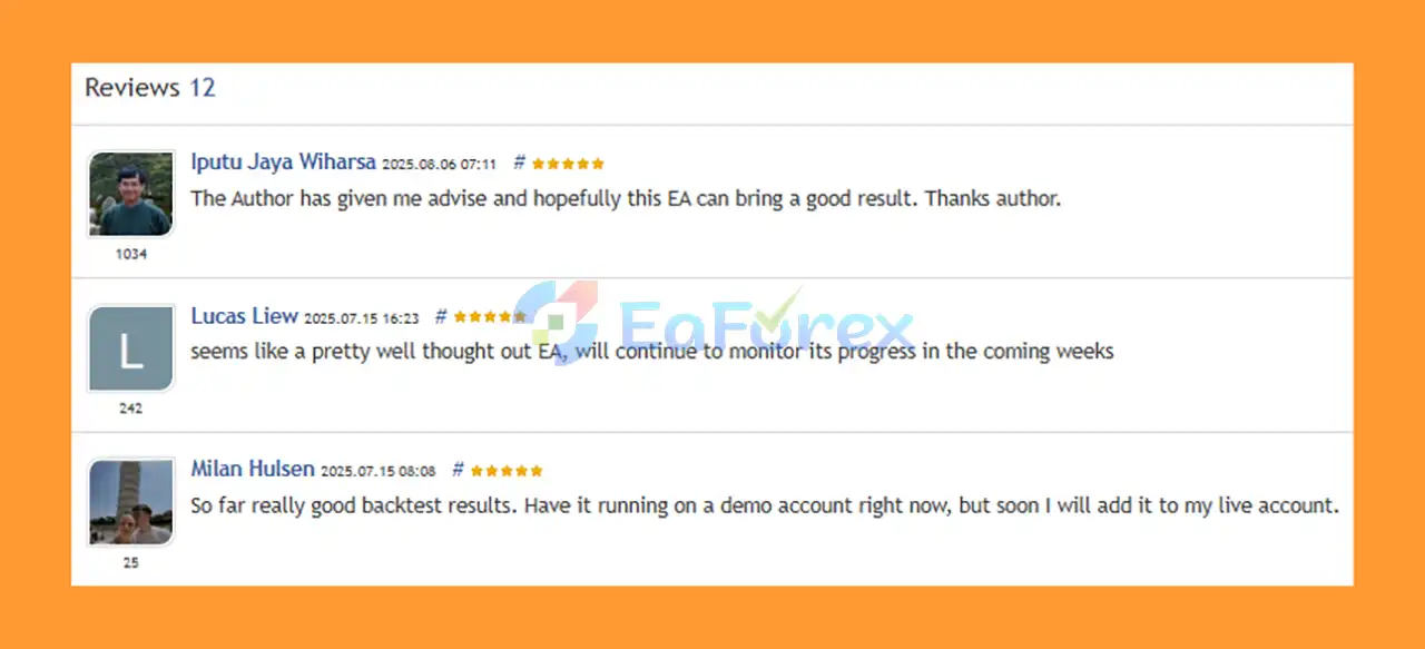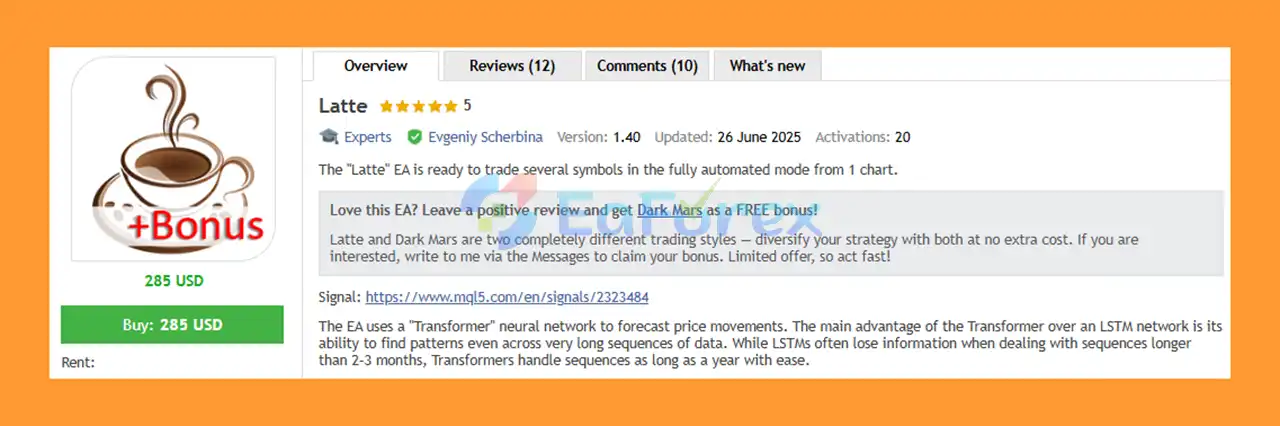 🔺Latte EA MT5 is highly appreciated by the MQL5 community for bringing stable and reliable profits. Below are 5 star reviews from users: