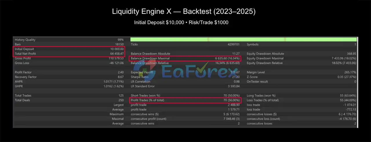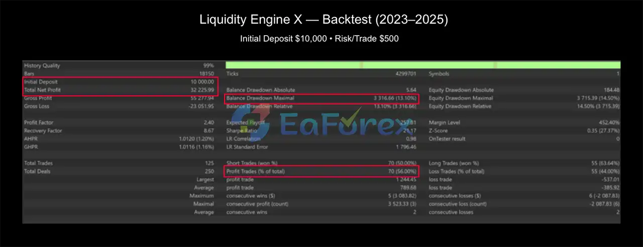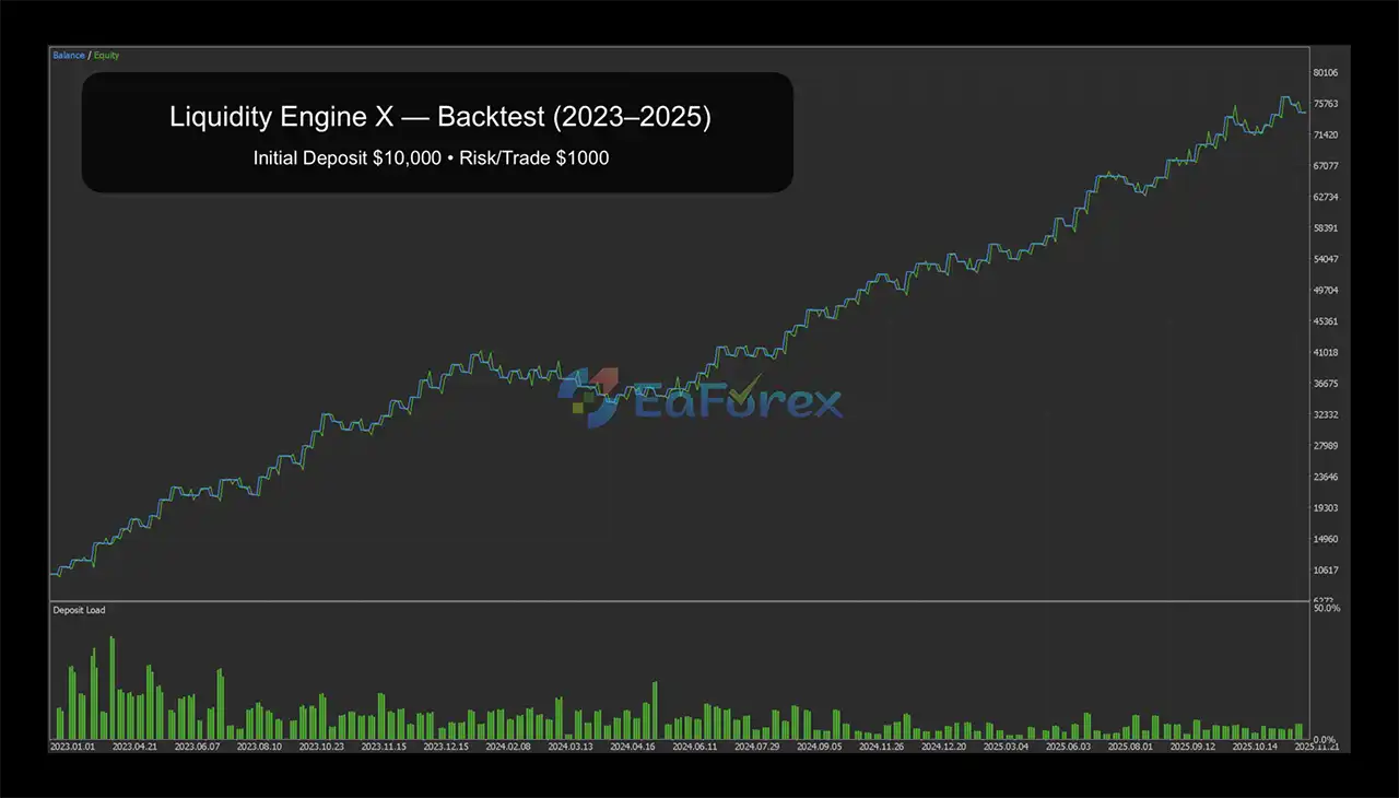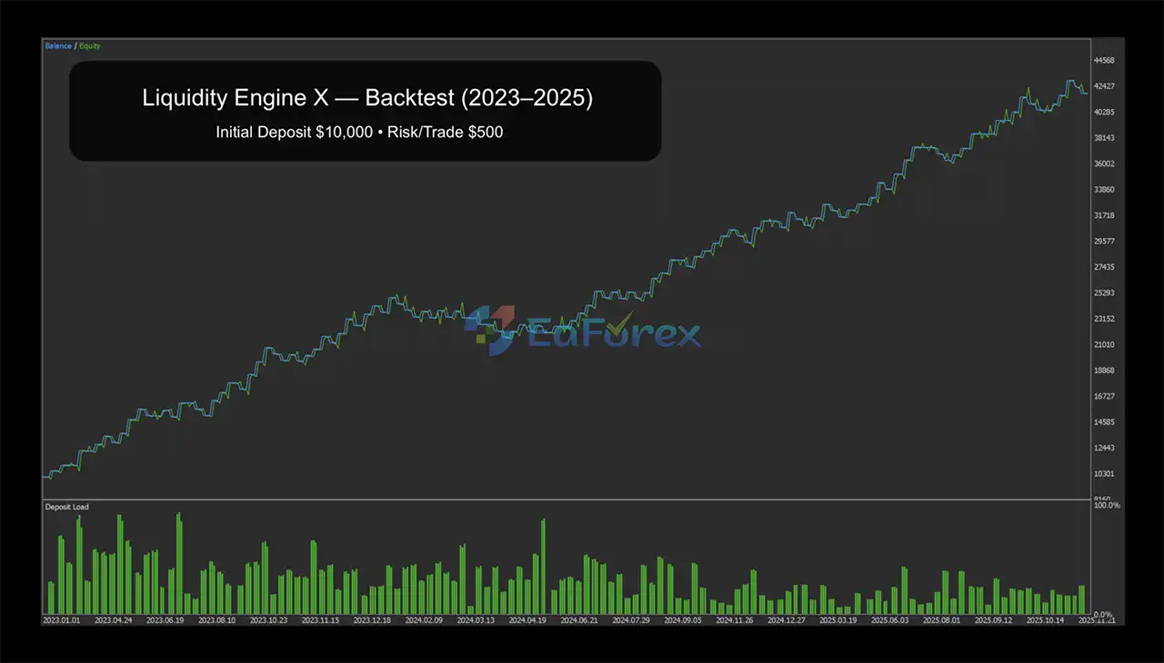 The EA is exclusively optimized for EURUSD, ensuring precise adaptation to the pair’s liquidity behavior and structure patterns.