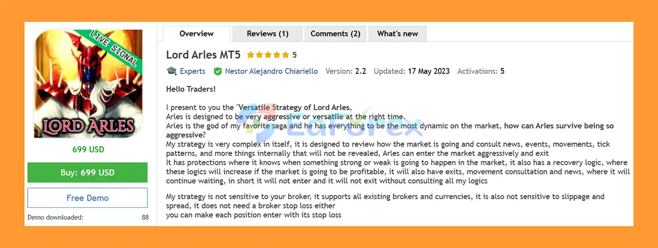 🔺Lord Arles MT5 is highly appreciated by the MQL5 community for bringing stable and reliable profits. Below are 5 star reviews from users:
