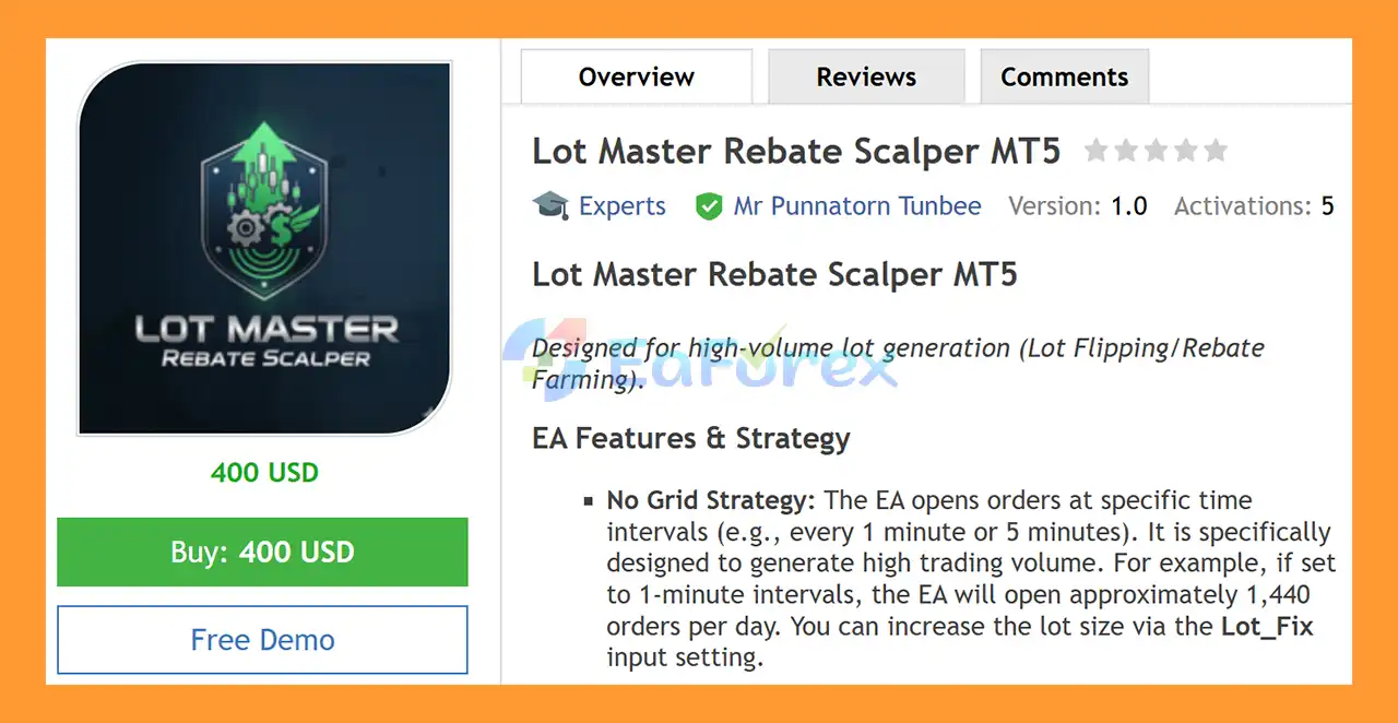 Lot Master Rebate Scalper MT5 Overview
