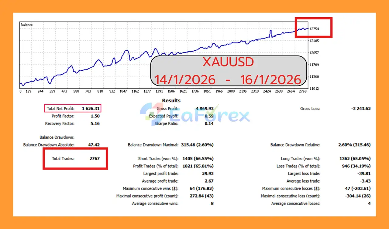 Yes. The EA has been backtested on XAUUSD (Gold) with a $10,000 initial deposit, achieving low drawdown (2.60%), a 65.81% win rate, and stable monthly profitability.