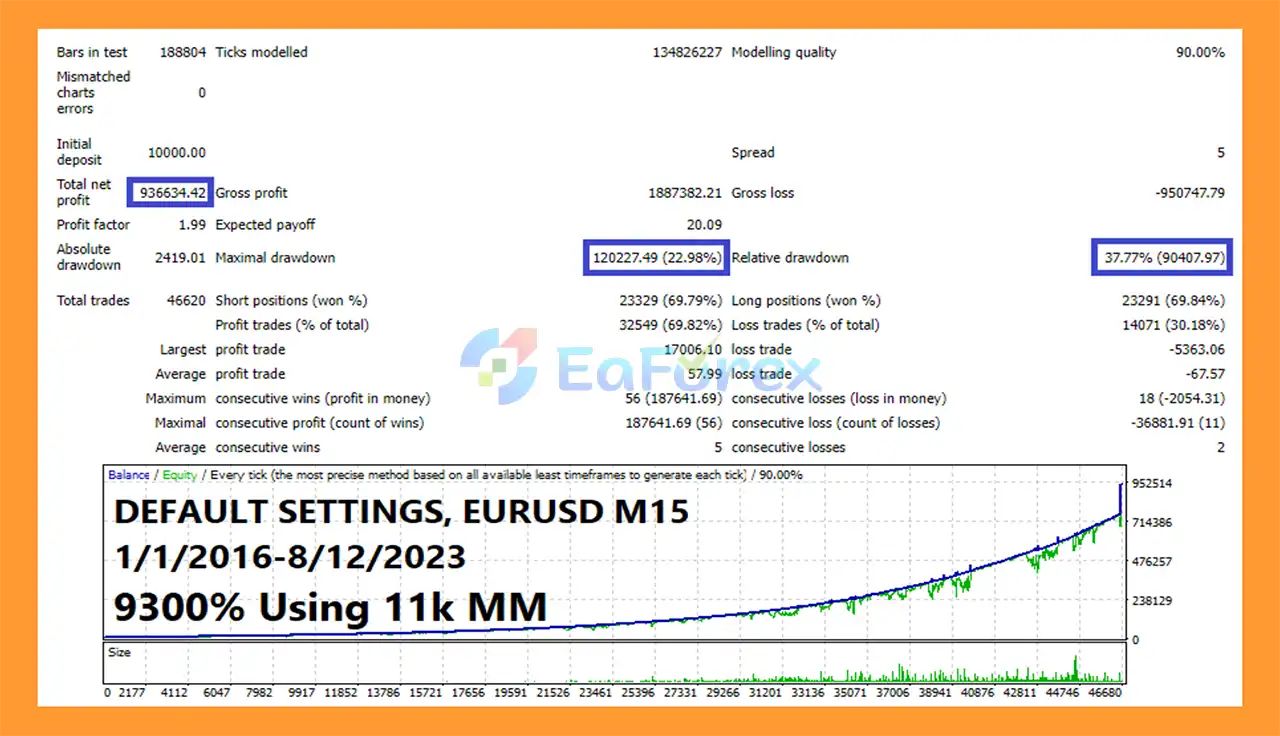 According to backtest data on EURUSD over 7 years, results include: