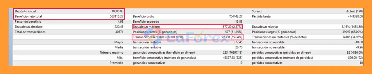 In historical testing on XAU/USD, Magic Vac EA MT4 showed a 65.04% win rate, 2.37% maximum drawdown, and strong net profitability, demonstrating stable and controlled gold trading performance.