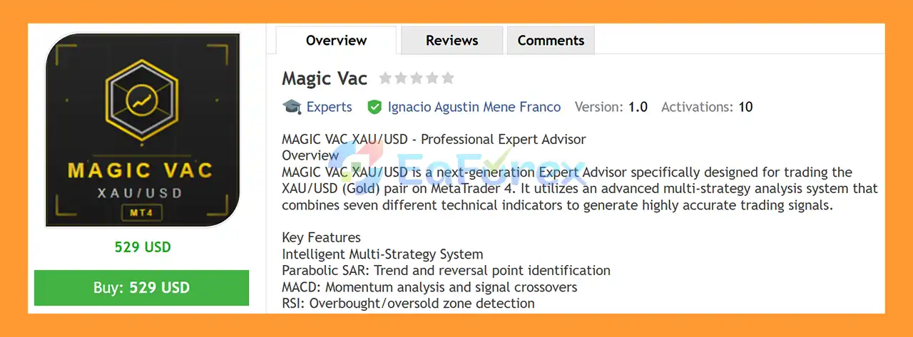 In summary, Magic Vac EA MT4 is a sophisticated and reliable gold trading Expert Advisor built exclusively for XAU/USD on the MT4 platform. By combining seven advanced technical indicators, multi-strategy signal confirmation, and professional risk management tools, it delivers accurate entries and controlled exposure in volatile gold markets. With features such as intelligent trailing stops, spread and time filters, and flexible money management, Magic Vac EA MT4 is an excellent choice for traders seeking precision, safety, and fully automated gold trading performance.