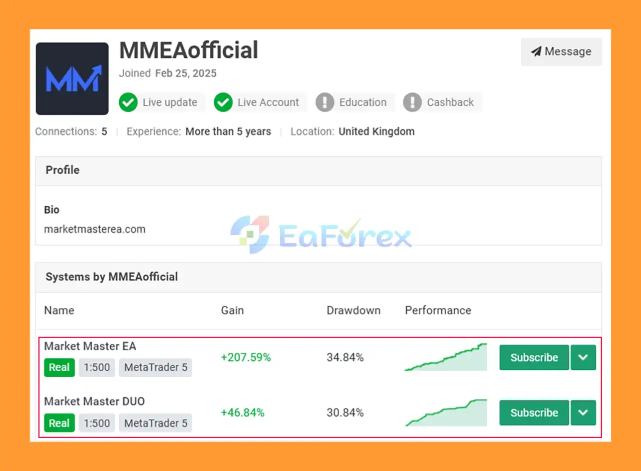 9. Are there verified performance results for Market Master EA MT5?
