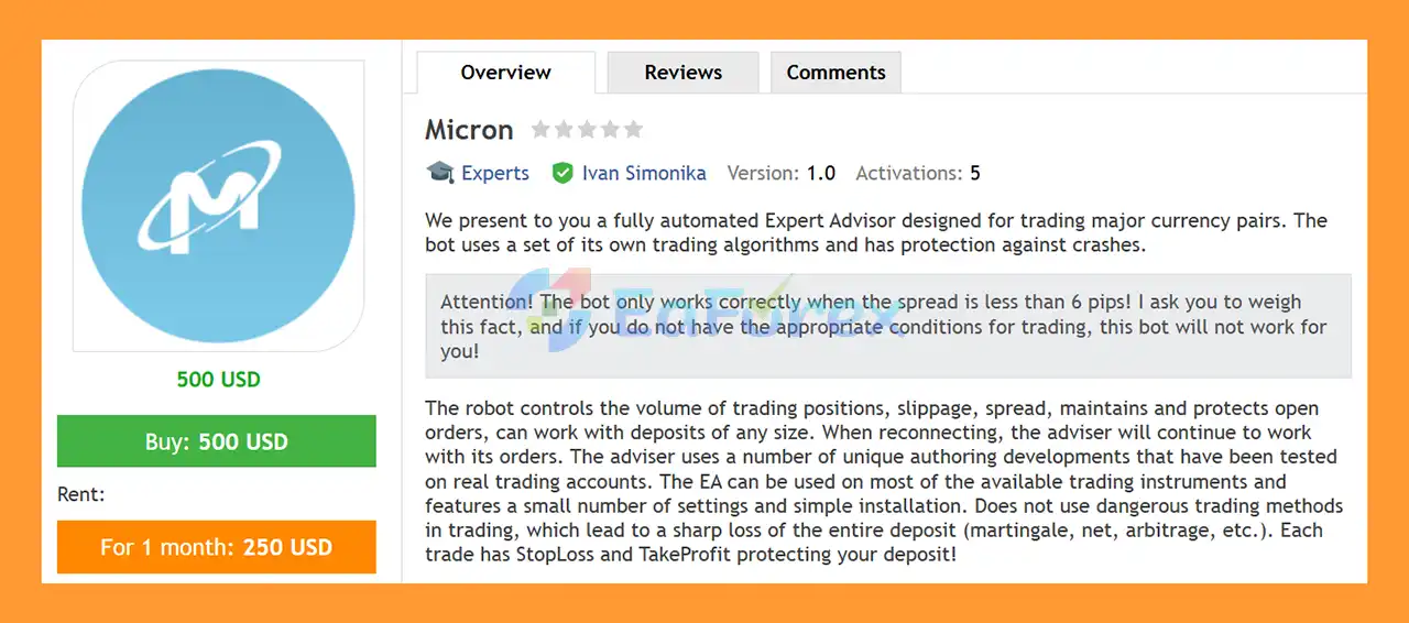 Micron EA MT4 is a fully automated MetaTrader 4 trading EA for major Forex pairs, using proprietary algorithms, spread monitoring, and advanced risk management.