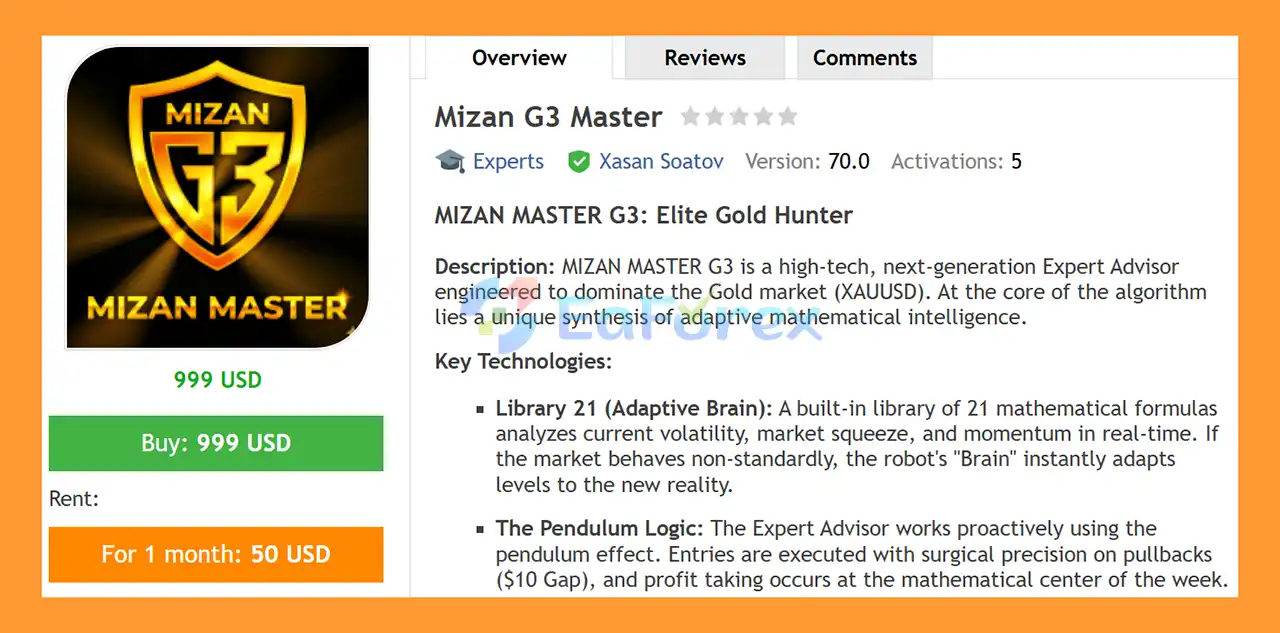 • Notable Products: Mizan G3 Master EA, Mizan Gold X EA and other advisors.