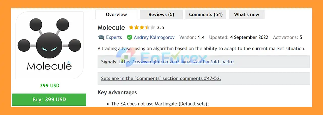 Molecule EA MT4 is an adaptive Forex Expert Advisor for MetaTrader 4 that uses a quantum-based algorithm to trade efficiently on EUR/USD while responding intelligently to changing market conditions.