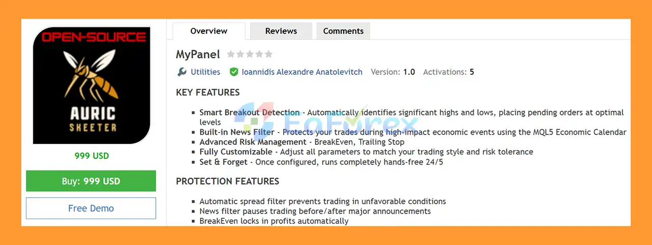 MyPanel EA MT4 is an automated breakout trading EA using smart price detection,news filters, and advanced risk control for stable, disciplined Forex performance