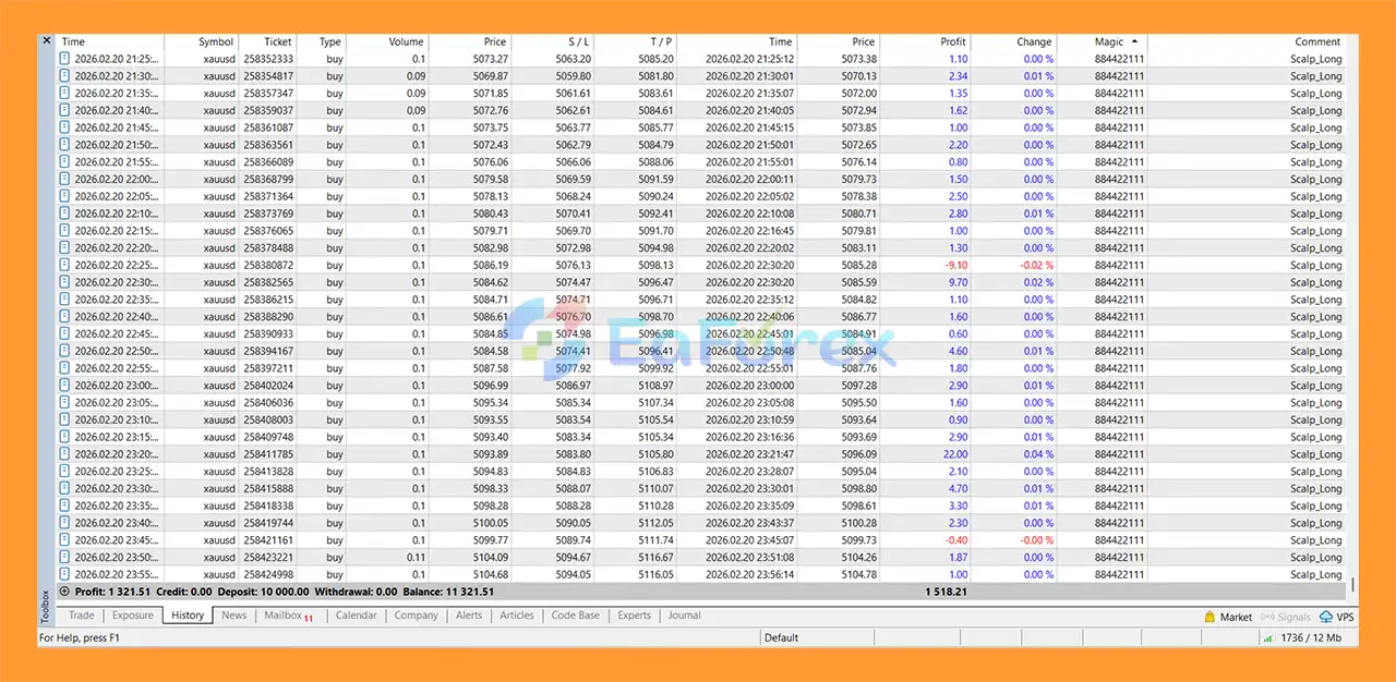 The EA is primarily optimized for the M1 (1-minute) timeframe, which allows it to perform high-speed scalping trades and capture quick price movements in the gold market.