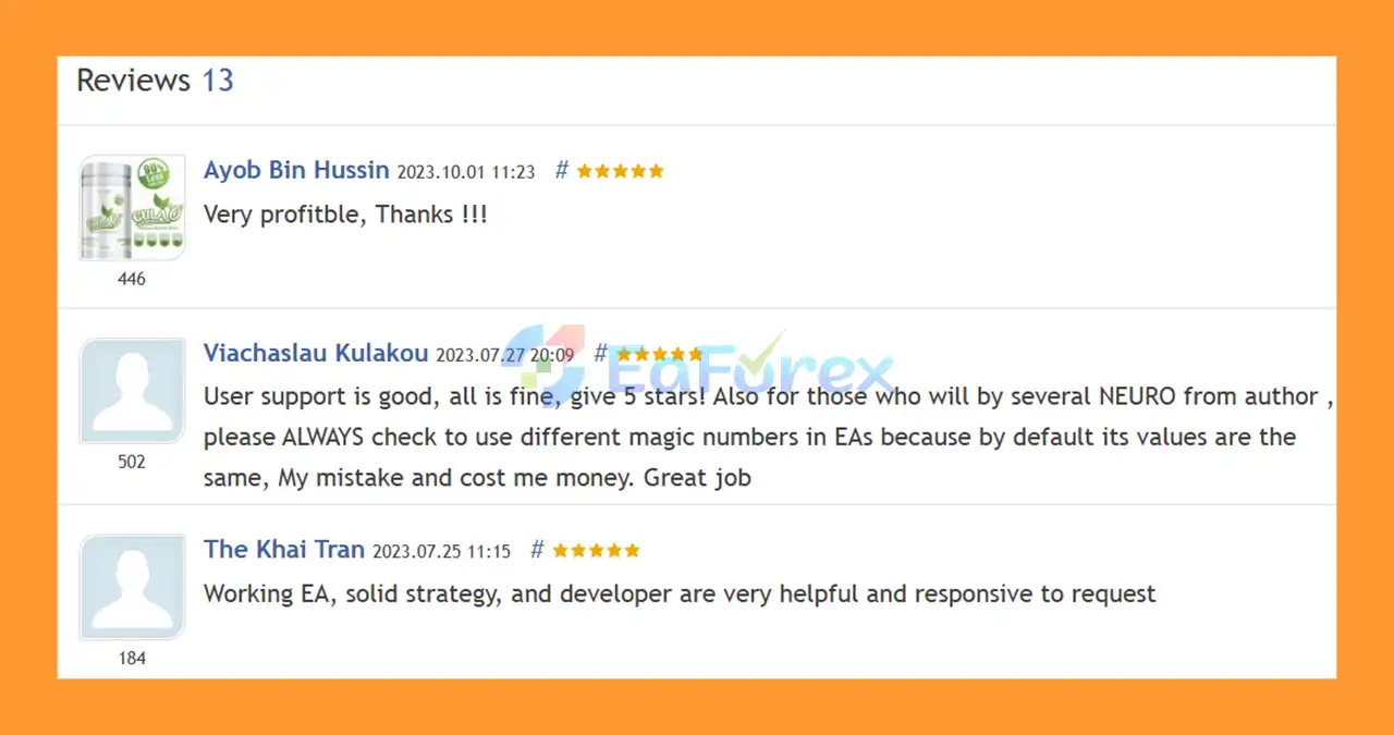 🔻 Neuron Net GOLD MT5 is highly appreciated by the MQL5 community for bringing stable and reliable profits. Below are 5 star reviews from users: