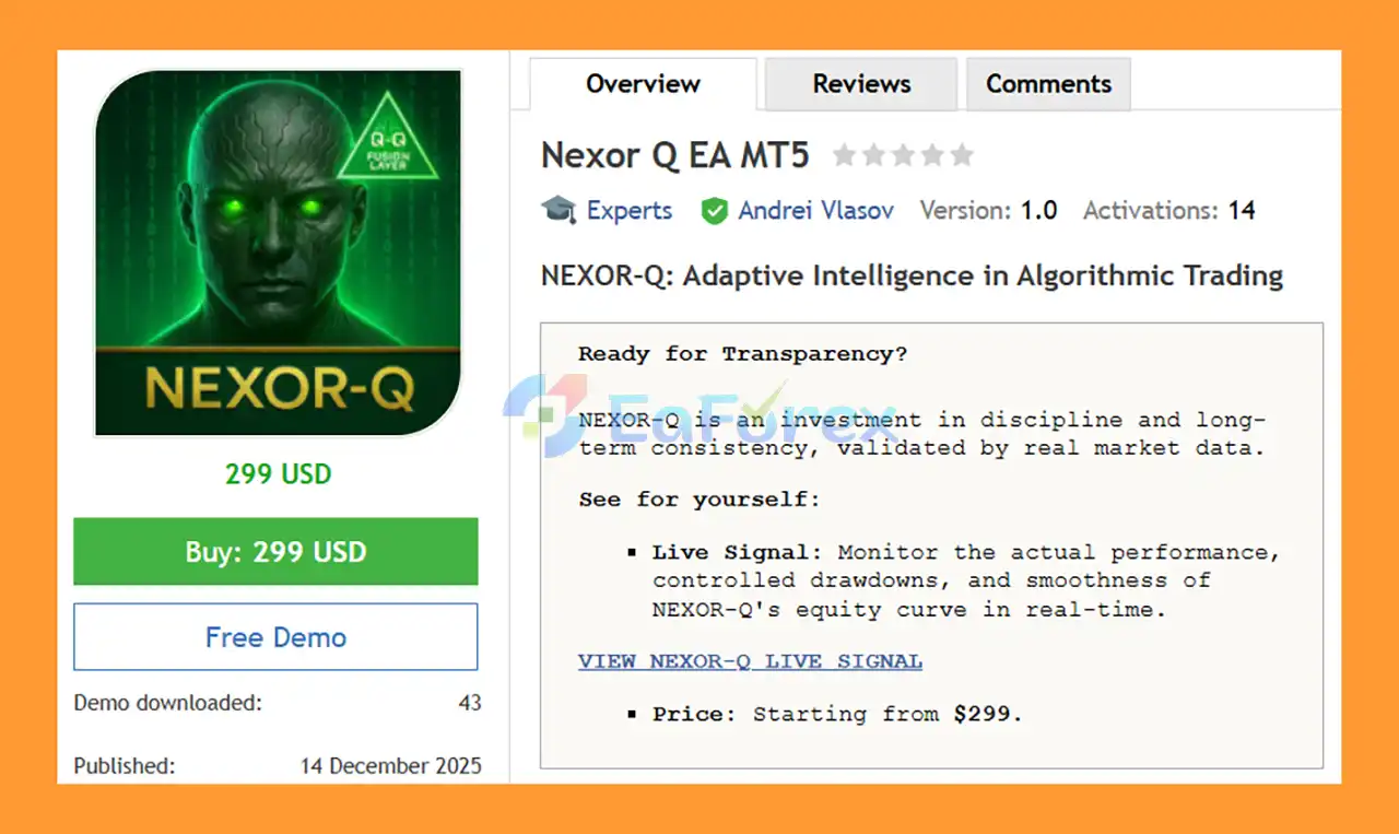 In summary, The Nexor Q EA MT5 is a professional adaptive trading system built for traders who prioritize capital preservation, consistency, and long-term performance. With its Fusion-Based Decision Architecture, advanced volatility analysis, and adaptive risk compression tools, this expert advisor outperforms traditional indicator-based EAs by only trading when there is a clear statistical advantage. Supported by robust live signal performance, extensive years of reverse testing, and a disciplined risk control framework, the Nexor Q EA MT5 stands out as a reliable solution for serious traders seeking intelligent, stability-focused automated trading with future-proof capabilities.