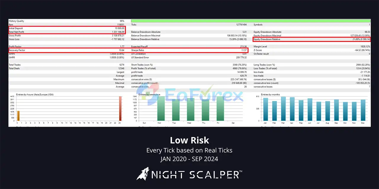 In summary, Night Scalper by NoCap FX MT5 is a conservative and well-structured automated trading system built for low-volatility night sessions on MetaTrader 5. With its straightforward scalping logic, strict time-based trade management, and strong focus on risk control, this Expert Advisor avoids high-risk techniques while aiming for steady, realistic profits. Backed by verified live performance, multi-year backtests, and a capital-preservation mindset, Night Scalper by NoCap FX MT5 is a strong choice for traders who value consistency, transparency, and long-term stability over aggressive trading approaches.