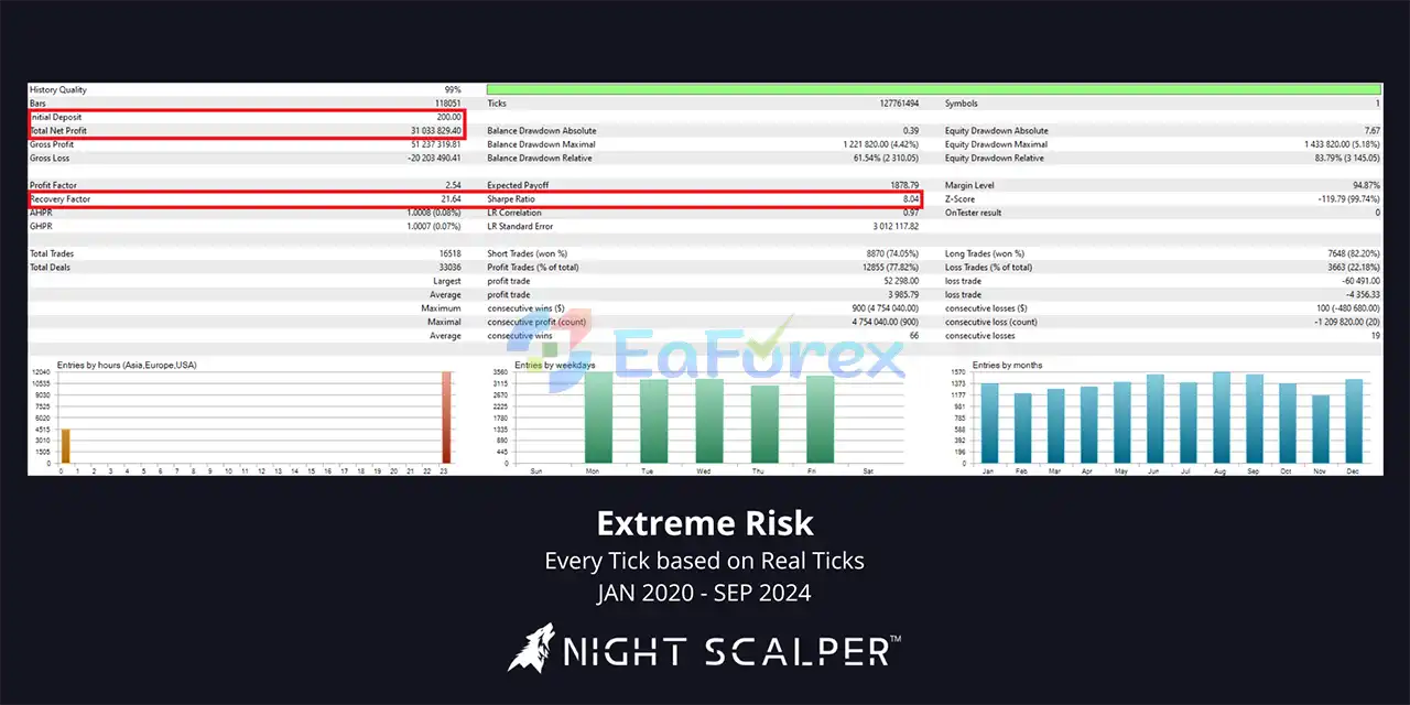 The EA trades during late-night, low-volatility sessions, when market conditions are calmer and more predictable. All positions are opened and closed within the same trading session, avoiding overnight exposure.