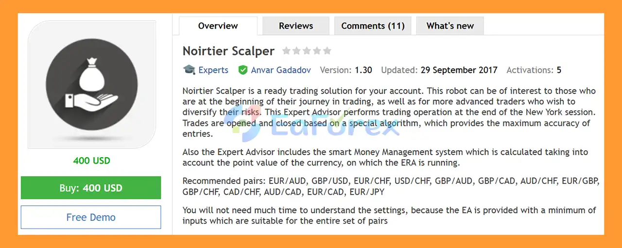 4. What currency pairs can Noirtier Scalper EA MT4 trade?