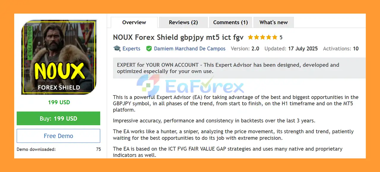 • Notable Products: NOUX Forex Shield GBPJPY MT5, ORKA Forex High Energy EURJPY, THOR Forex Hammer USDJPY, Spartan Forex Sword expert mt5 gbpusd and other advisors.