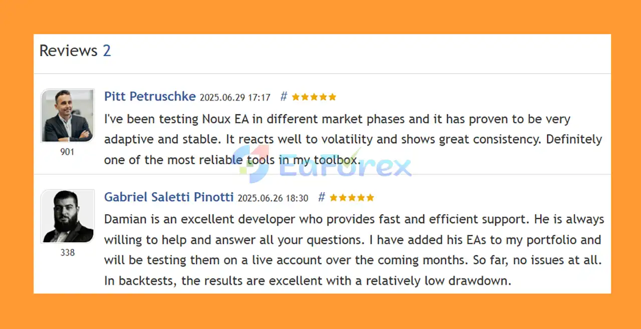 🔺NOUX Forex Shield GBPJPY MT5 is highly appreciated by the MQL5 community for bringing stable and reliable profits. Below are 5 star reviews from users:
