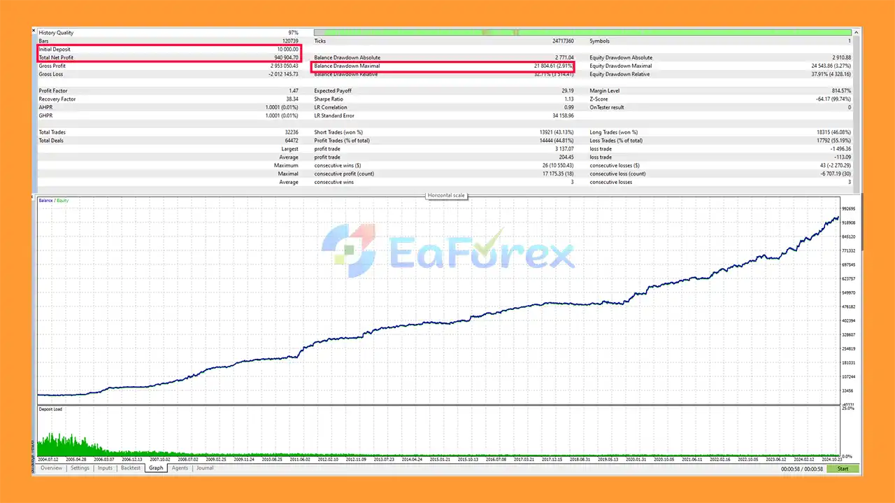 Backtests on $10,000 deposits delivered $940,900 net profit with less than 3.5% maximum drawdown, confirming its long-term reliability and sustainable growth for XAUUSD trading.