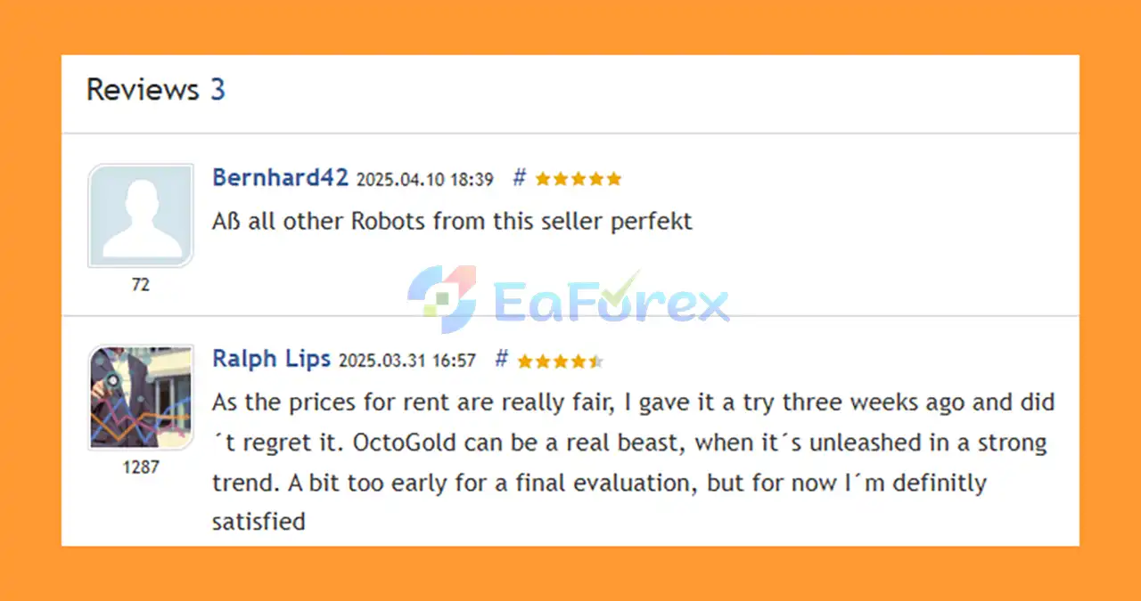 🔺OctoGold EA MT5 is highly appreciated by the MQL5 community for bringing stable and reliable profits. Below are 5 star reviews from users: