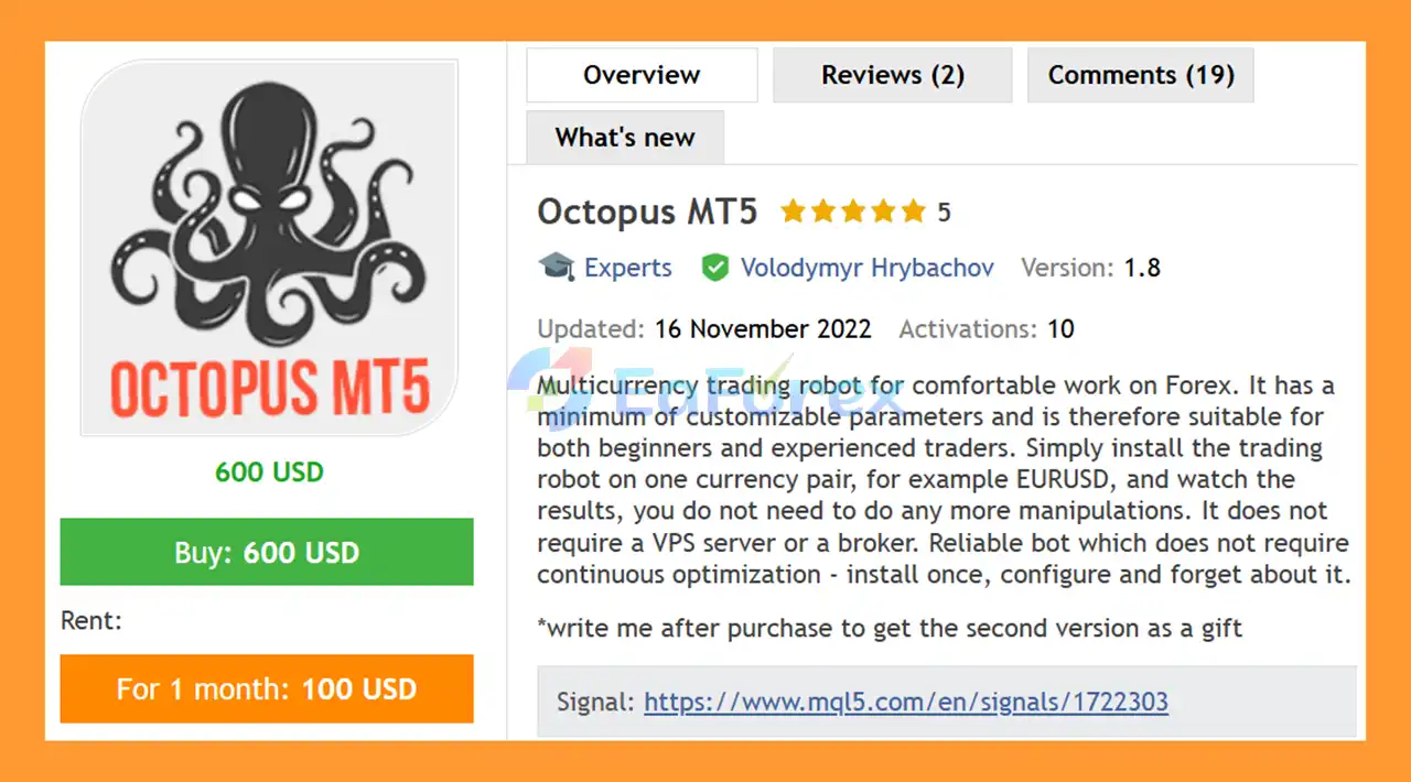 - Notable Products: Octopus MT5, Hamster MT5, Kraken MT4, Universal MT5 and other advisors.
