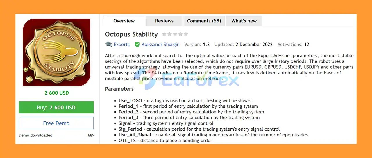 • Notable Products: Octopus Stability MT4, Crown EA MT4, Wizard EA MT4, Monopolist EA MT4, Oasis EA MT4 and other advisors.