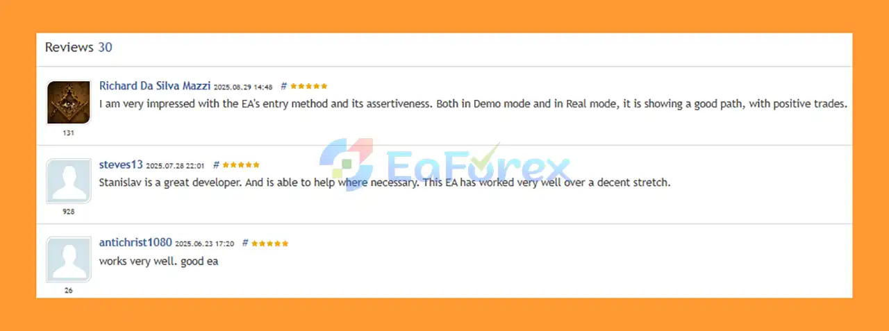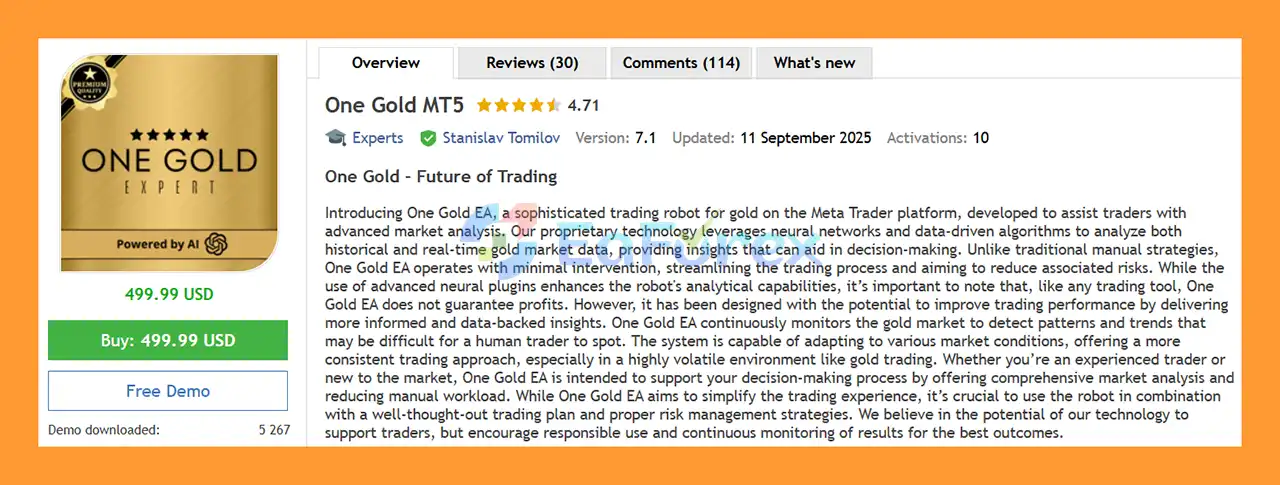 🔻One Gold MT5  is highly appreciated by the MQL5 community for bringing stable and reliable profits. Below are 5 star reviews from users: