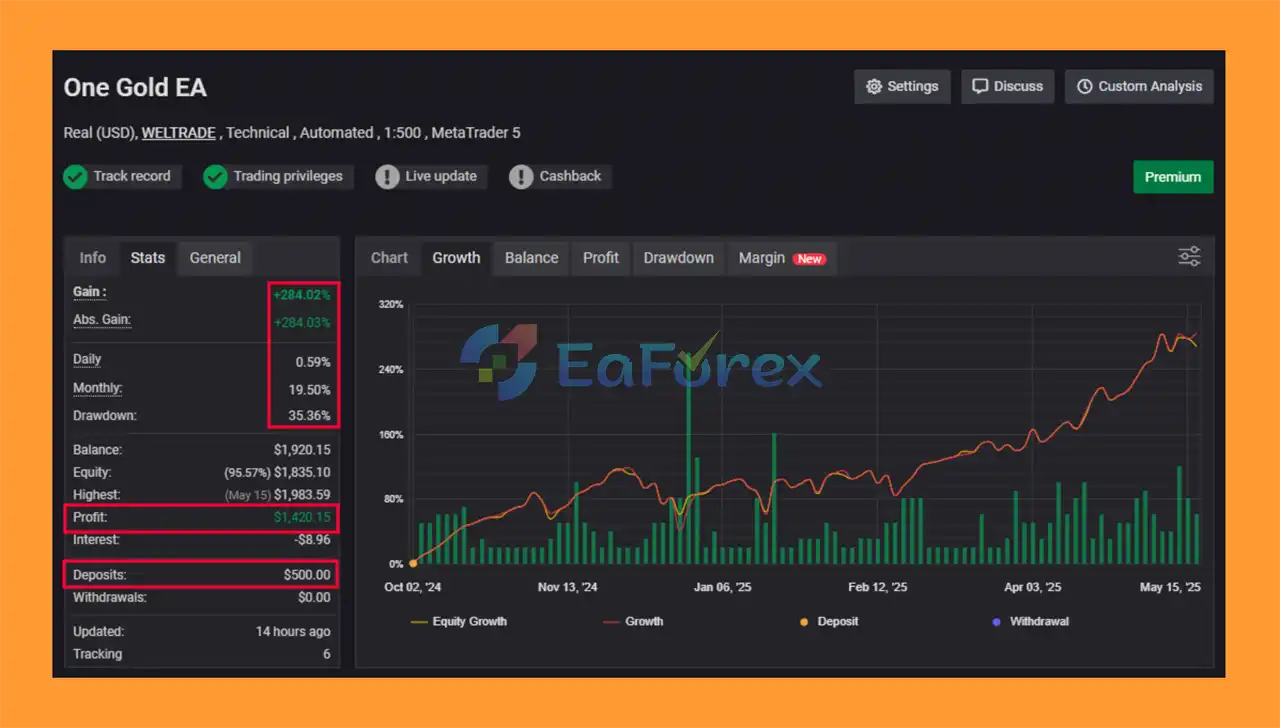 These metrics confirm One Gold MT5’s high accuracy and long-term profitability.