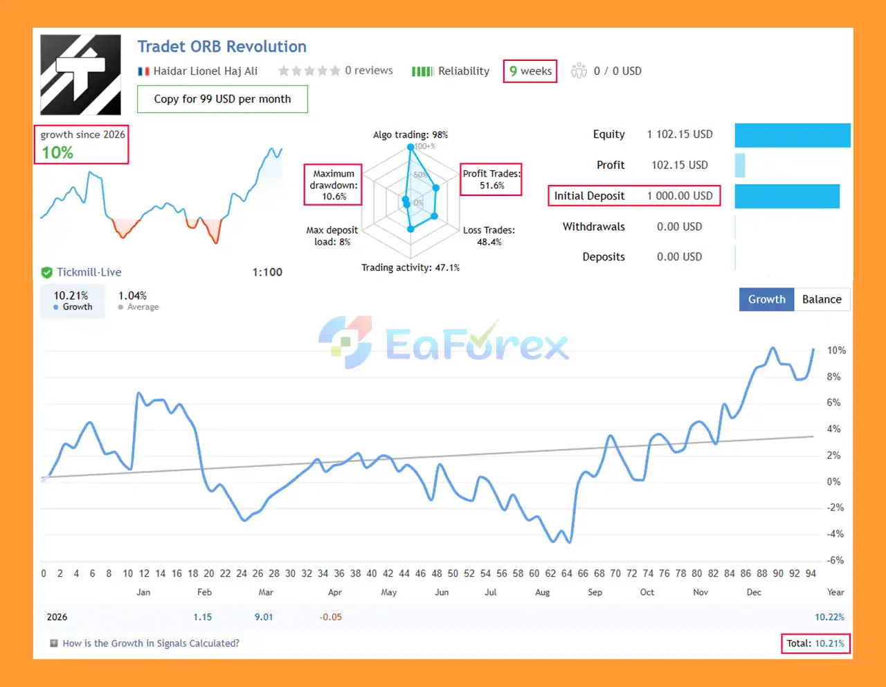 6. What are the performance results of ORB Revolution EA MT5?