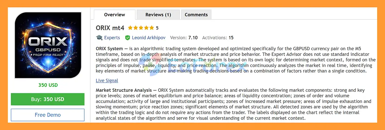 • Notable Products: ORIX mt4, ORIX mt5, Aurum AI MT5, Aurum AI MT4, Range AI MT5, EuroStorm MT4 and other products.