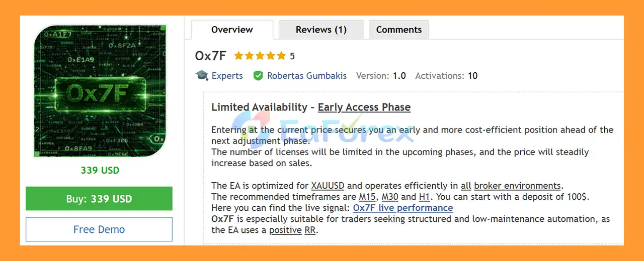 🔺Ox7F EA is highly appreciated by the MQL5 community for bringing stable and reliable profits. Below are 5 star reviews from users: