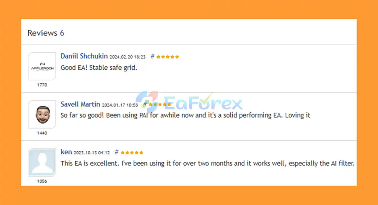 🔺Perceptrader AI MT5 is highly appreciated by the MQL5 community for bringing stable and reliable profits. Below are 5 star reviews from users: