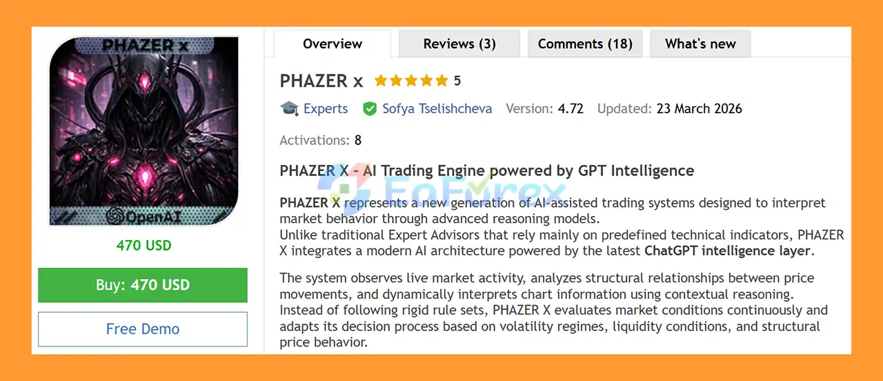 In summary, PHAZER x EA MT5 is an innovative AI-powered trading system that leverages ChatGPT reasoning to interpret market conditions and execute high-probability trades. Optimized for gold (XAUUSD) and adaptable across multiple instruments, it combines intelligent pattern recognition, dynamic risk management, and selective trade execution to minimize overtrading and protect capital. With strong backtested and live performance, VPS optimization, and AI-driven decision logic, PHAZER x EA MT5 offers professional traders a cutting-edge, reliable, and scalable solution for automated trading in modern markets.