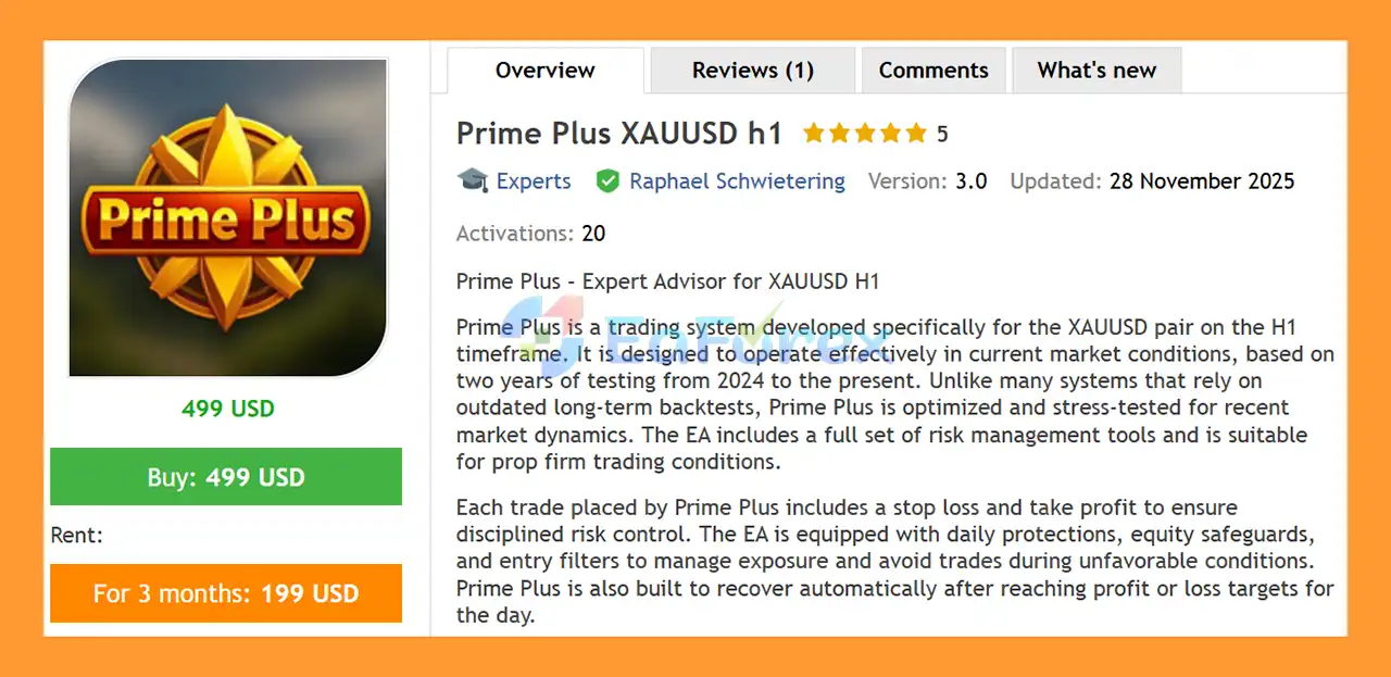 10. What makes Prime Plus XAUUSD H1 MT5 a reliable Gold trading EA?