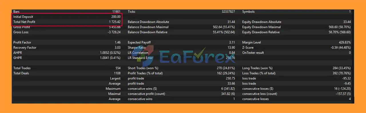 8. What are the backtest results of ProTrade AutoTrader EA MA MT5?