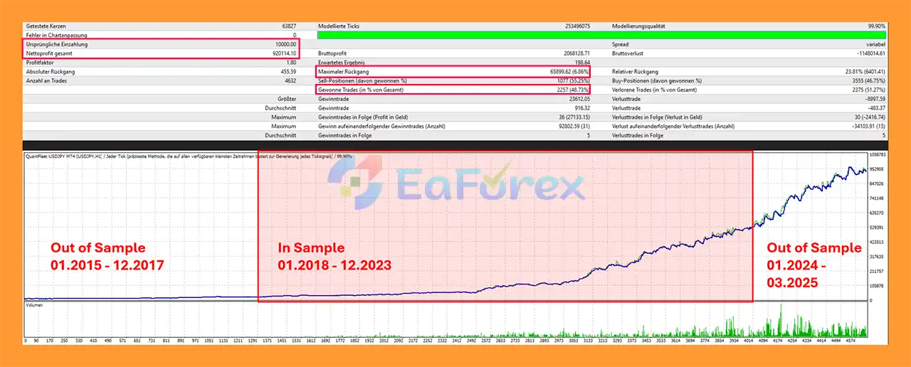 Quant Fleet MT5 is exclusively optimized for USDJPY, carefully tuned to its volatility, liquidity, and price behavior. It is not a generic multi-pair Expert Advisor.