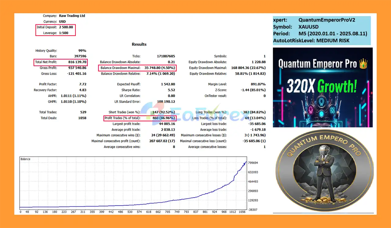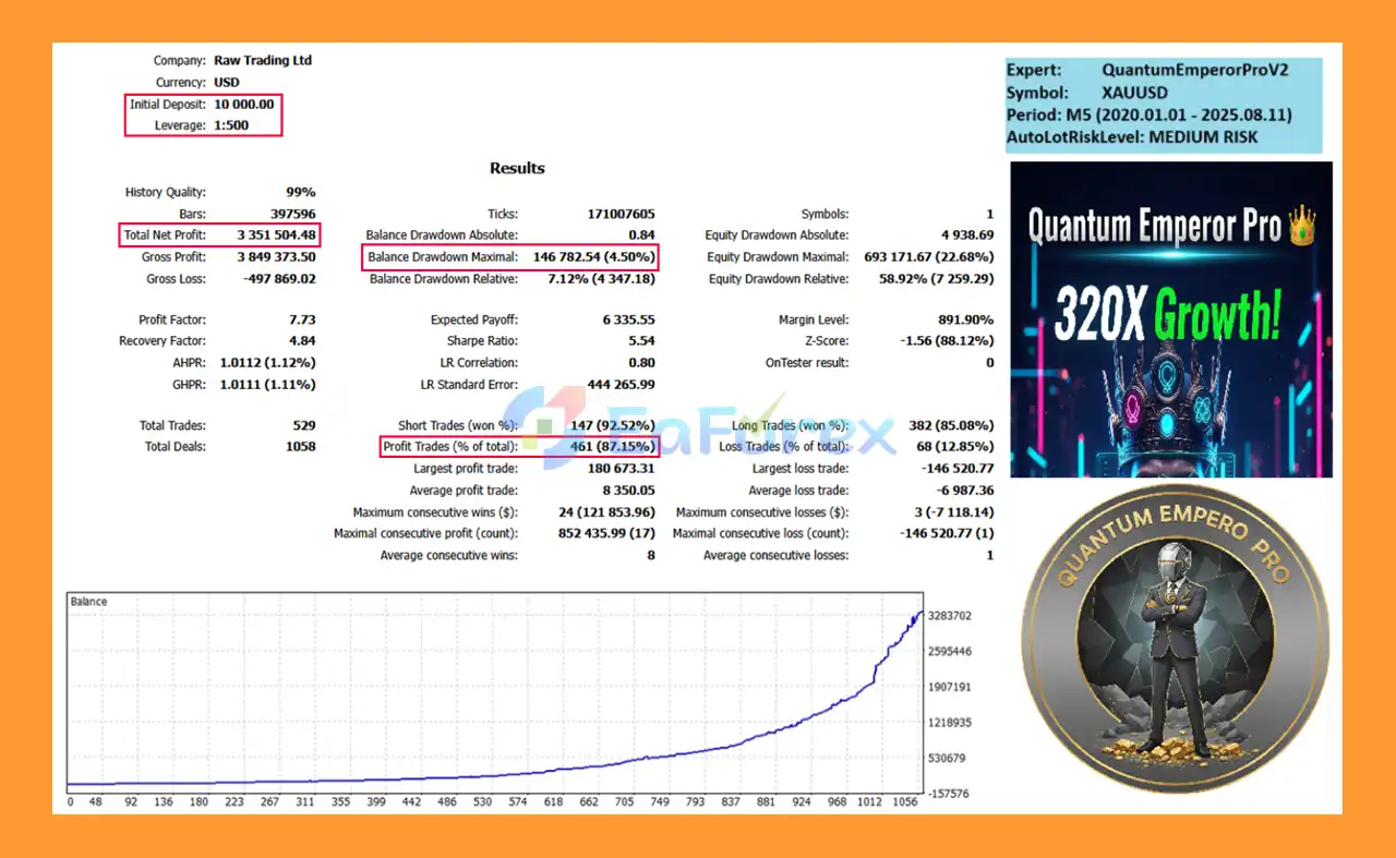 By combining grid-based trading logic, multiple internal strategies, and structured risk modes, Quantum Emperor Pro offers traders a powerful automation engine capable of scaling performance across different account sizes and market sessions.