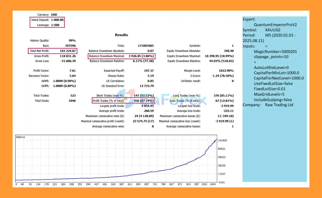 7. Are the backtest results of Quantum Emperor Pro MT5 reliable?
