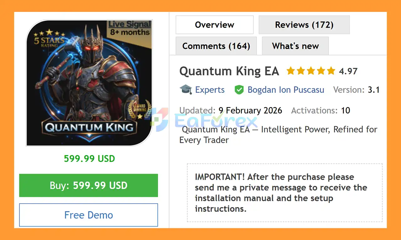 Quantum King EA is designed for all trader levels — from beginners seeking a hands-free solution to professional traders managing larger portfolios. The setup is simple, and the system runs automatically 24/7.