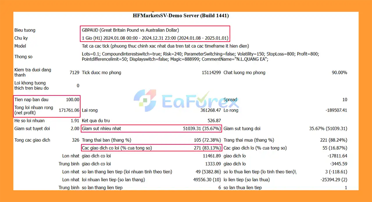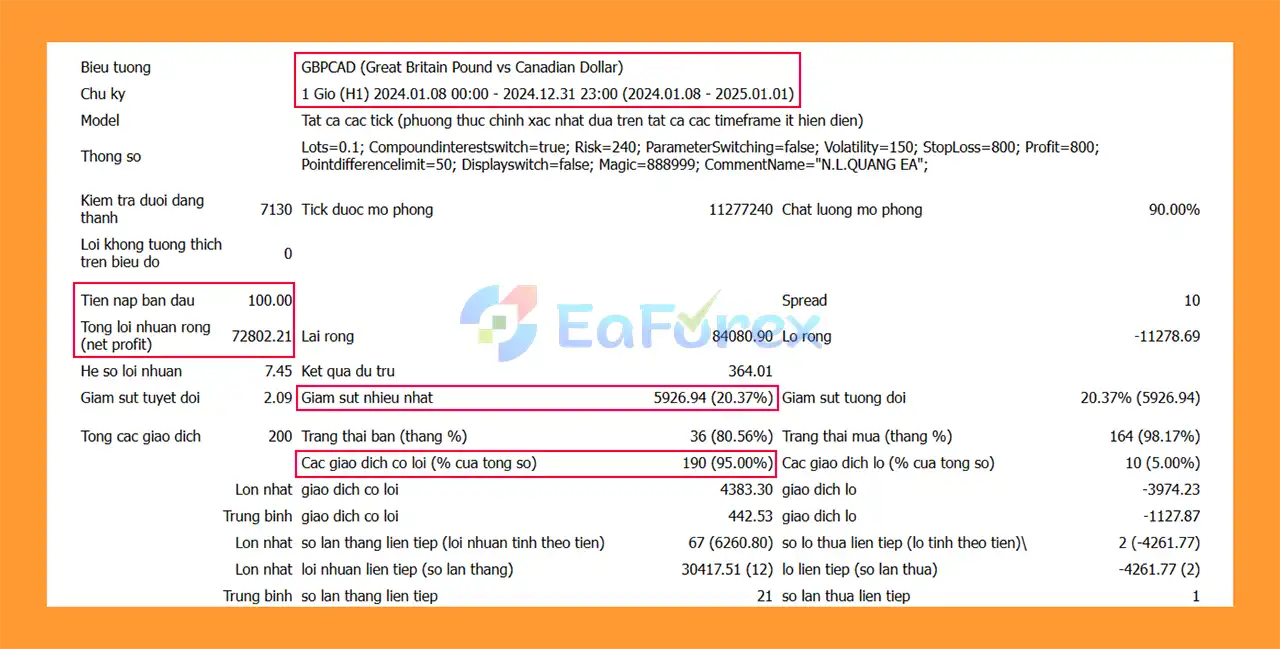 The EA is optimized for GBPCAD, AUDCAD, and GBPAUD, ensuring stable performance and effective trade execution.