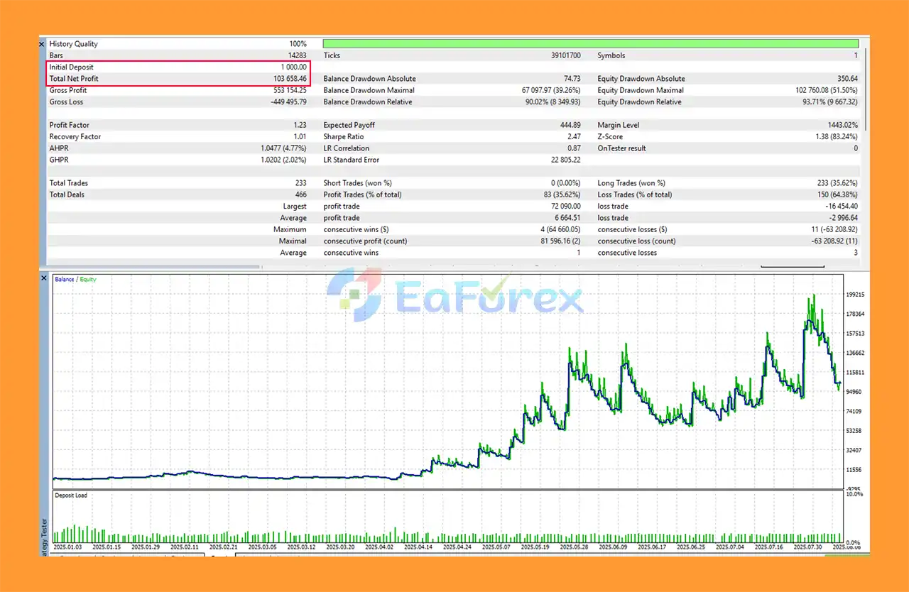 The EA typically generates 15–30 high-quality trades per month, focusing on precision rather than high-volume trading. This helps avoid market noise and reduces unnecessary risk.