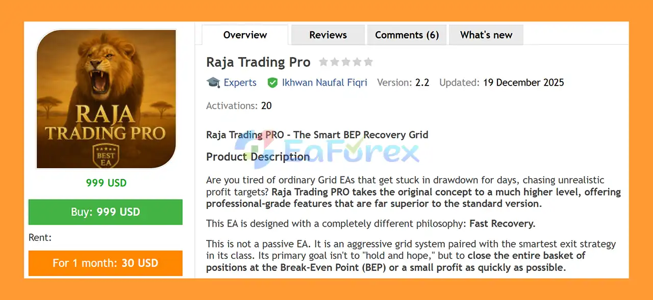 • Notable Products: Raja Trading Pro EA MT5 and other advisors.